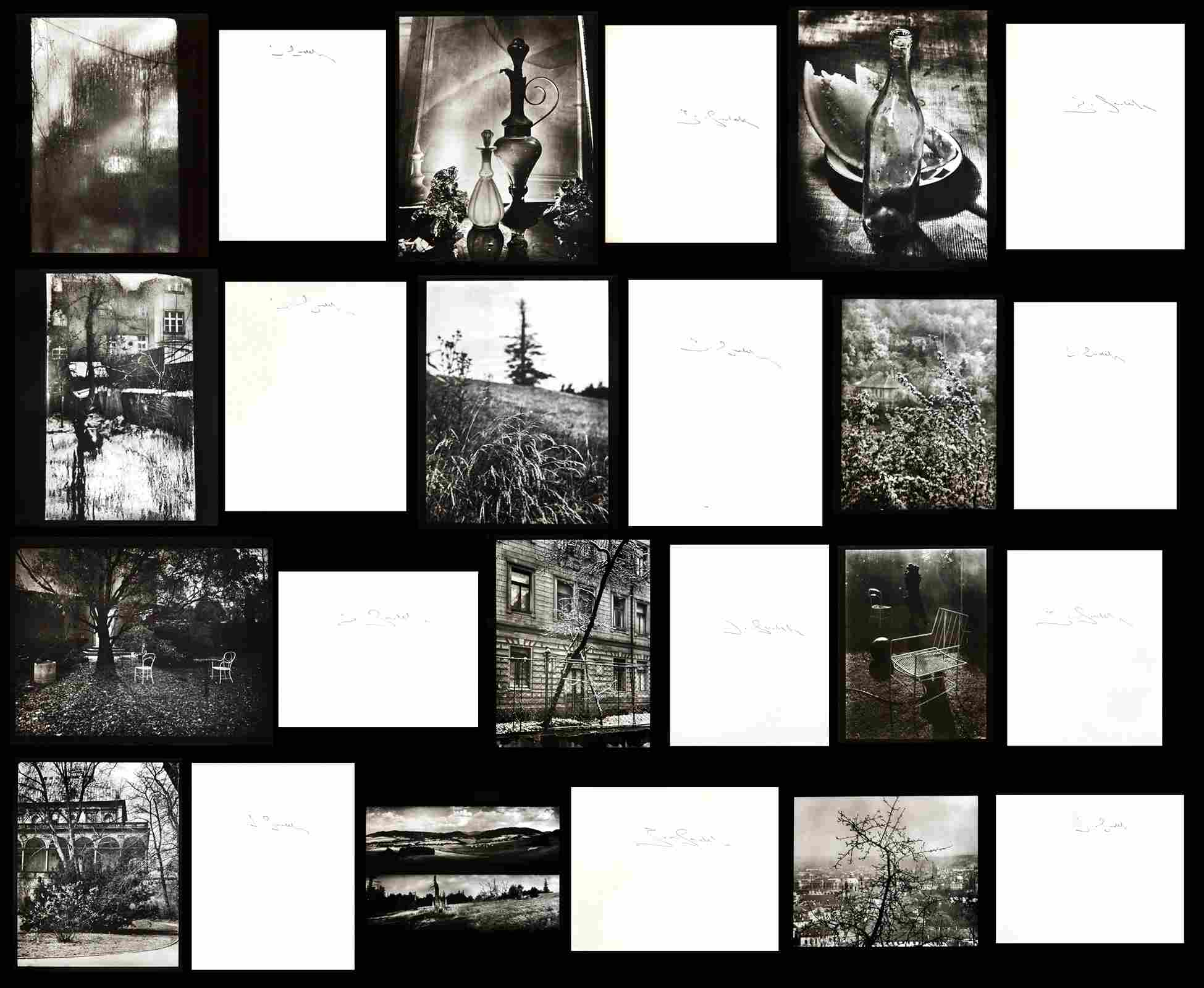 13 čb. fotografií J. Sudka na 12 listech s podpisem fotografa na rubu každého listu a na tit. listě průvodního sešitu, vyd. Pressfoto, Praha, 1976, ed. Mezinárodní fotografie, sv. 1, řídí A. Fárová, upr. Libor Fára, 12 listů a sešit ve výborném stavu, pův. papírová obálka při okrajích a v přehybech poškozená, místy vyspravena izolepou