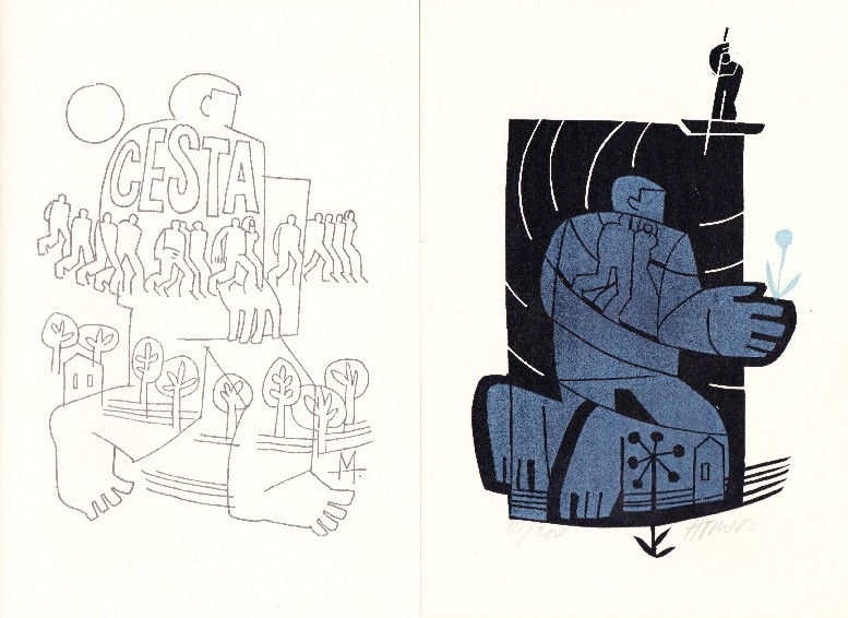 sign. dřevoryt M. Houra, sborník pozdravů k 50. narozeninám M. Houry vyd. V. Mikule, K. Samšiňák a J. Vitáček, Olomouc, 1983, volné listy, dobrý stav