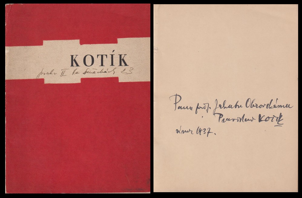podp. s věn. Jakubu Obrovskému na patitulu P. Kotík, vyd. jako soukromý tisk Jan Fromek, 1937, ex. 188/350, brož, 34s. + obrazová příloha, lehce opotřebené okraje, mírně rozvolněná vazba, jinak dobrý stav