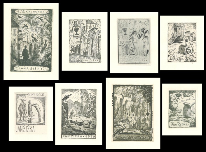 ukázky leptů, litografií, dřevorytů a ex-libris v knize J. Konůpek, vyd. Jaroslav Picka, Praha, 1947, 26 nečíslovaných výtisků, popisný sezn. tvorby J. Konůpka pro J. Žižku sepsal Kamill Resler, volné archy v ob., 41s. + přílohy, ruční papír, velmi dobře zachováno!