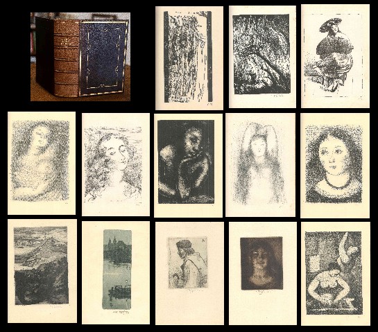 obs. kompletní grafickou přílohu (vše sign): Fr. Bílek: Nejvyšší spravedlnost (dřevořez), Fr. Kobliha: Pokušení sv. Antonína (dřevoryt), K. Vik: Turnov (bar. dřevoryt), V. Röhling: Věnovací list (bar. dřevoryt), Sv. Klír: Posmrtná maska F. Nietzche (bar. mäserová deska), A. Moravec: Rozmluva (linoryt) a Jezdec (bar. linoryt), V.H. Brunner: Kresba (tisk), 7x R. Kremlička: Španělka, Spící děvče, V zasnění, Zamyšlené děvče, Probuzení, Dívčí hlava a Pradleny (vše lit.), S. Kulhánek: Exlibris (mědirytina), Fr. Pavelka: Studie (suchá jehla), T.F. Šimon: Dívčí hlava (mezzotinta), V. Röhling: Exlibris (lept), J. Naumann: Strašák (bar. lept), Fr. Kobliha: Pokušení sv. Antonína (akvatinta) a T.F. Šimon: Slovák (Vernis mou), na předtitulním listě též obs. sign. Vernis mou "Hradčany" (V. Stretti); vyd. Ludvík Bradáč, Praha, 1927, ex. 199/500 s podp. J.M. Augusty v tiráži, vyšlo jako 1. svazek Bibliothéky Knihomola, vyzdobeno Zd. Braunerovou, svázáno do krásné clkžn. vazby se zlacením, 1102s. + přílohy, vybledlý hřbet, jinak velmi dobrý, krásný stav!