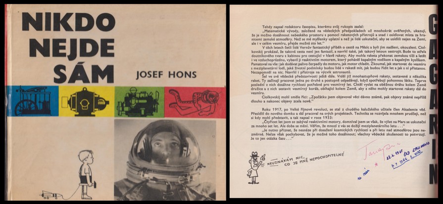 podp. v těle knihy naproti textu o prvním letu do vesmíru J. Gagarin, vyd. SNDK, Praha, 1963, il. D. Foll, pův. lamin. vazba, velmi dobrý stav