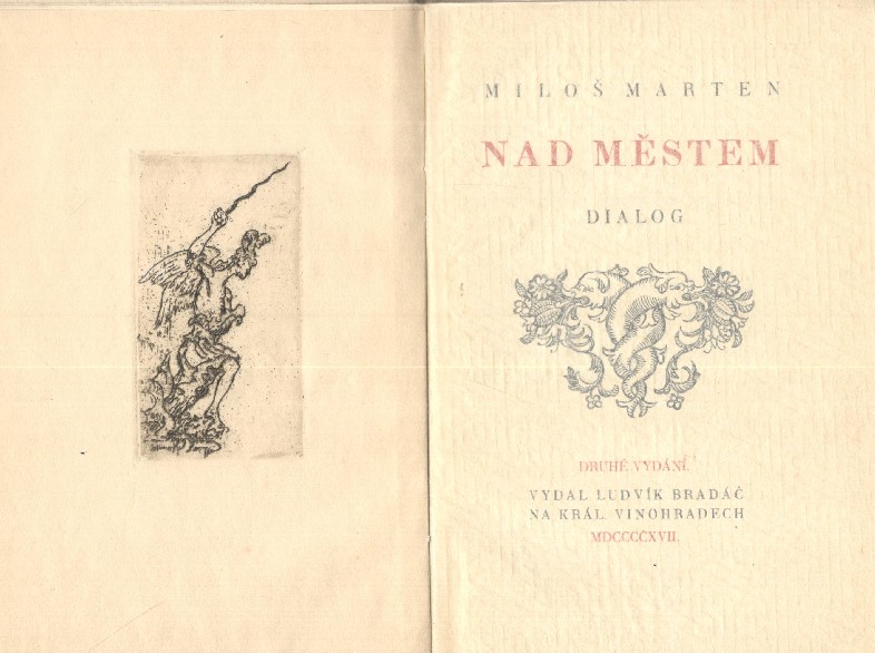 dřevoryt ve frontispisu, na tit. listě a na závěr T.F. Šimon, vyd. Ludvík Bradáč, Praha, 1921, ruční papír, polopergamenová vazba, 91s., velmi dobrý a hezký stav