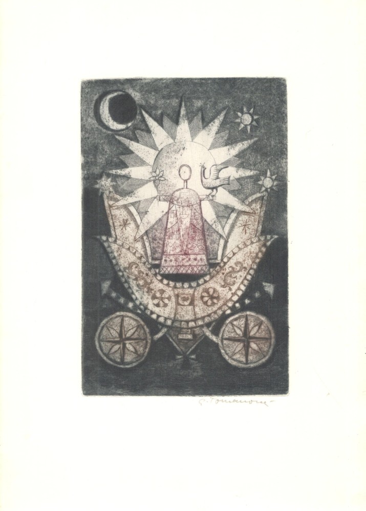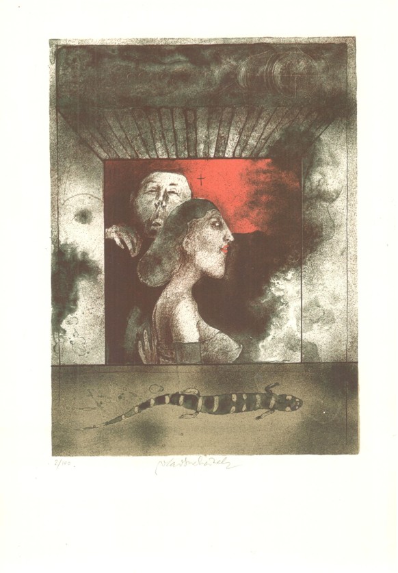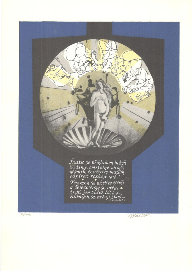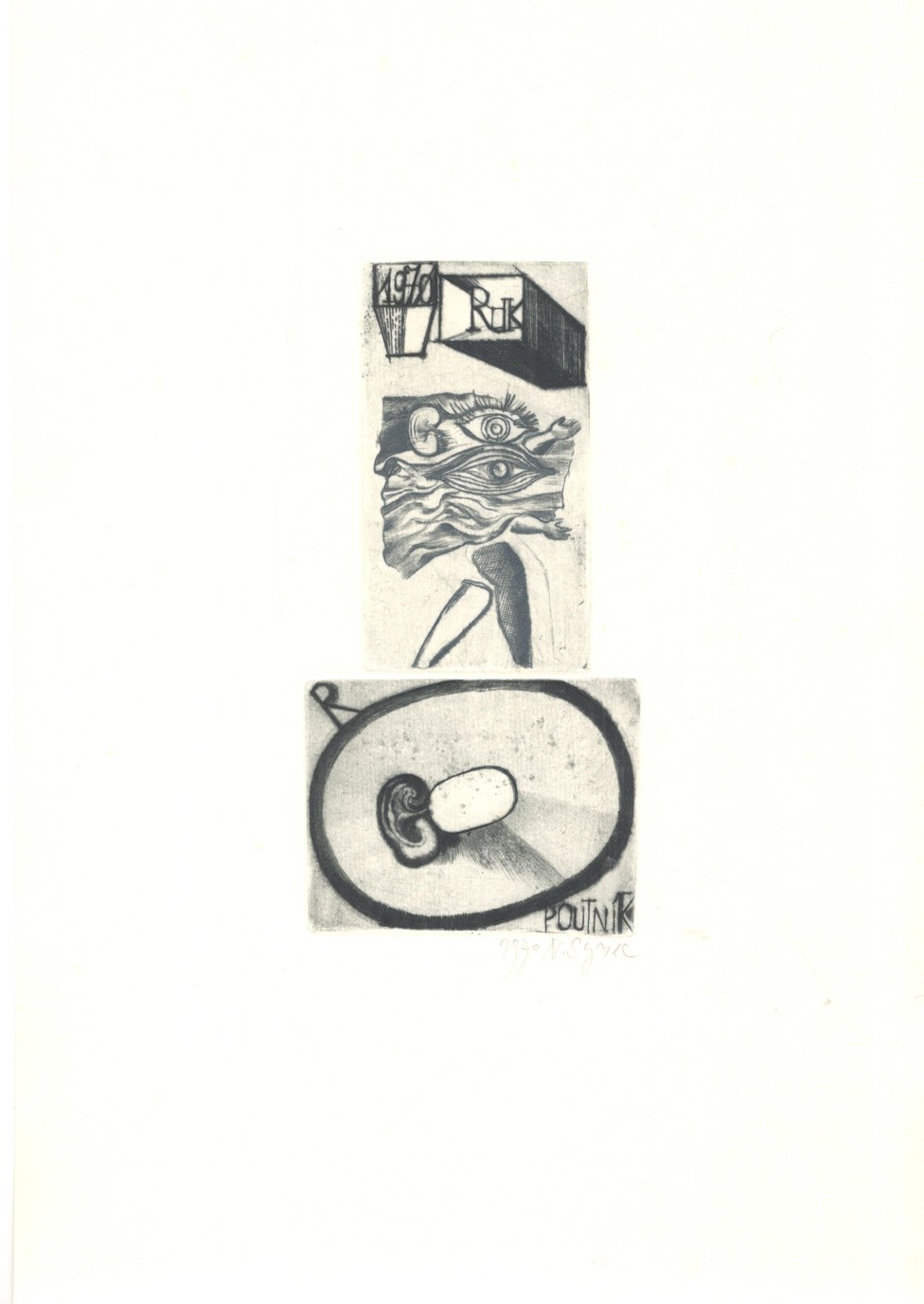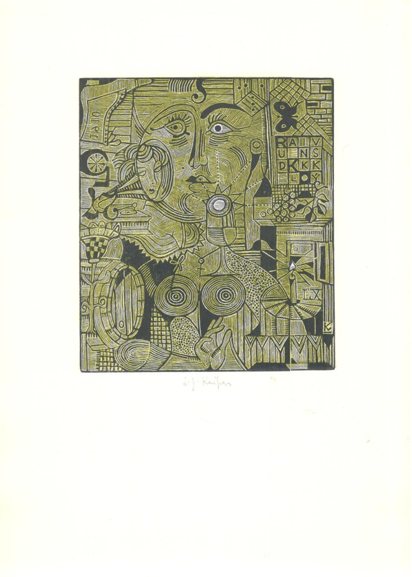 zcela výjimečný soubor 60 sign. grafických listů A4 s předmluvou dr. Františka Dvořáka (podp. s datací za textem) k šedesátinám R. Klinkovského; obs. především J. Anderle (lit), Fr. Gross (s.j.), D. Chatrný (bar. lin.), O. Janeček (lin.), J. John (s.j.), J. Liesler (bar. lept), K. Lhoták (s.j.), E. Ovčáček (bar. lept), K. Pacovská (bar. lept), B. Reynek (s.j.), Z. Seydl (lit.), Z. Sklenář (bar. lit.), P. Sukdolák (akvat.); dále obs.: grafické listy od: D. Berková, Fr. Bělohlávek, Fr. Bič, Fr. Burant, O. Čechová, B. Dvořáková-Kremláčková, J. Grmela, A. Grmelová, J. Hadlač, J. Halla, J. Holler, J. Hořánek, M. Houra, B. Housa, J. Janíček, L. Jiřincová, J. Kaiser, L. Kašpar, M. Klimovičová, B. Knobloch, E. Kotrba, P. Kryštof, J. Lukavský, A. Matasová, Fr. Mentlík, Z. Mézl, R. Michal, K. Müller, Fr. Nikl, K. Oberthor, J. Pešicová, Fr. Peterka, V. Polášek, P. Rolčík, J. Severová, V. Sivko, V. Suchánek, K. Svolinský, N. Synecká, J. Šerých, J. Šváb, J. Švengsbír, E. Tomanová, J. Uiberlay, V. Vaculka, Vl. Komárek a E. Weidlich; lepty, suché jehly a akvatinty vytiskli P. Dřímal, M. Dřímal a B. Knobloch, litografie tiskli J. Fremut, J. Kraml a E. Weidlich a dřevoryty a linoryty M. Houra, Ruda Svěch a Josef Zela; vyd. Klub přátel umění v Gottwaldově, 1974, ex. 2/60, typ. upr. M. Severin; k albu volných listů v karton. deskách přiložen dopis z 5.12. 1974 paní Klinkovské o zařazení listu Vl. Komárka namísto K. Vysušila, který grafický list nedodal; obs. též tištěný seznam grafických listů s údaji o technice a rozměru; každý grafický list vzadu očíslován (1-60), velmi dobrý stav!