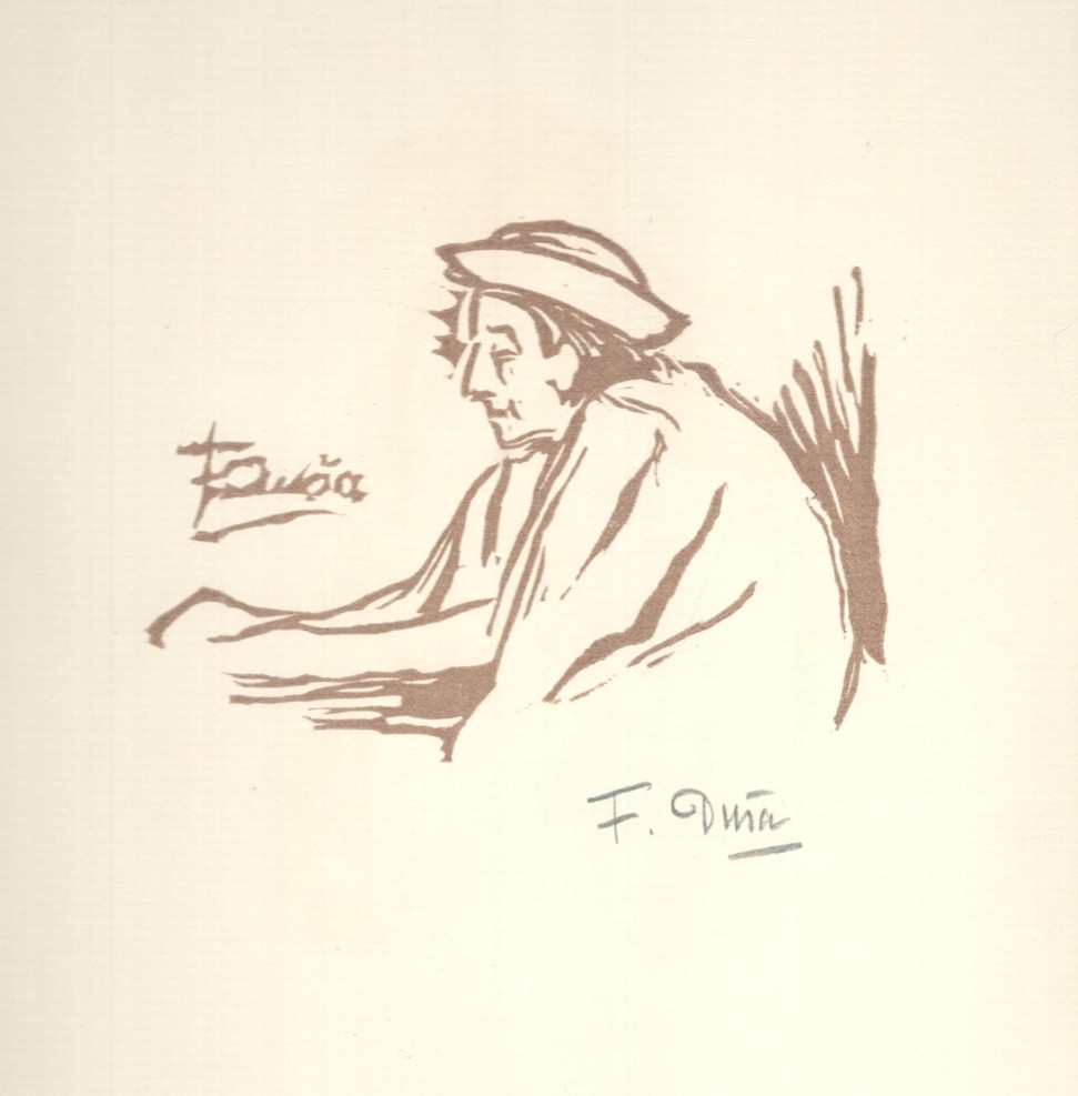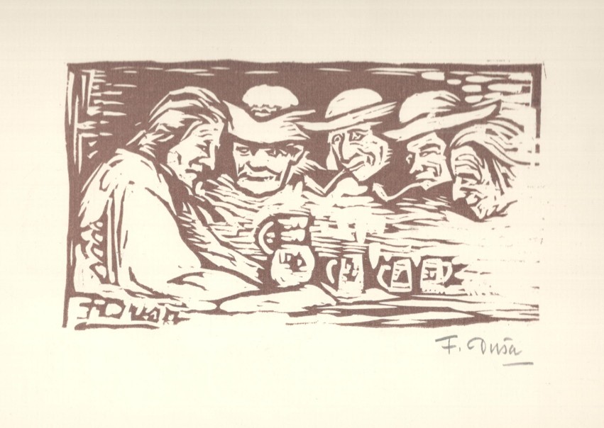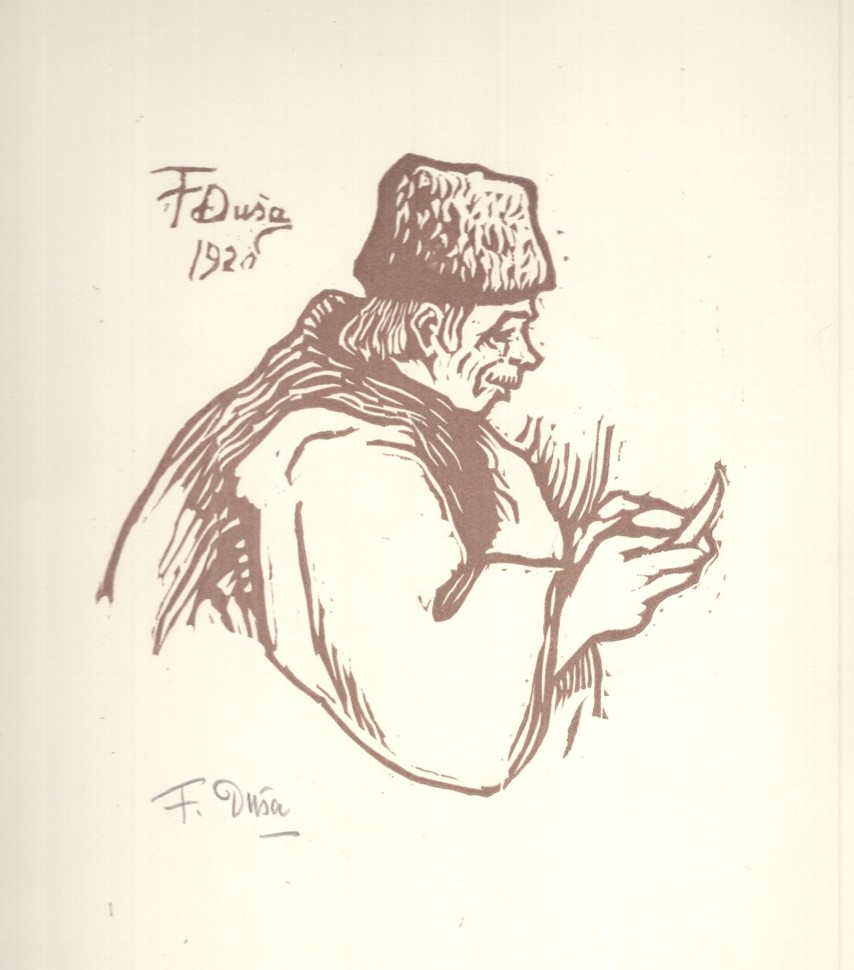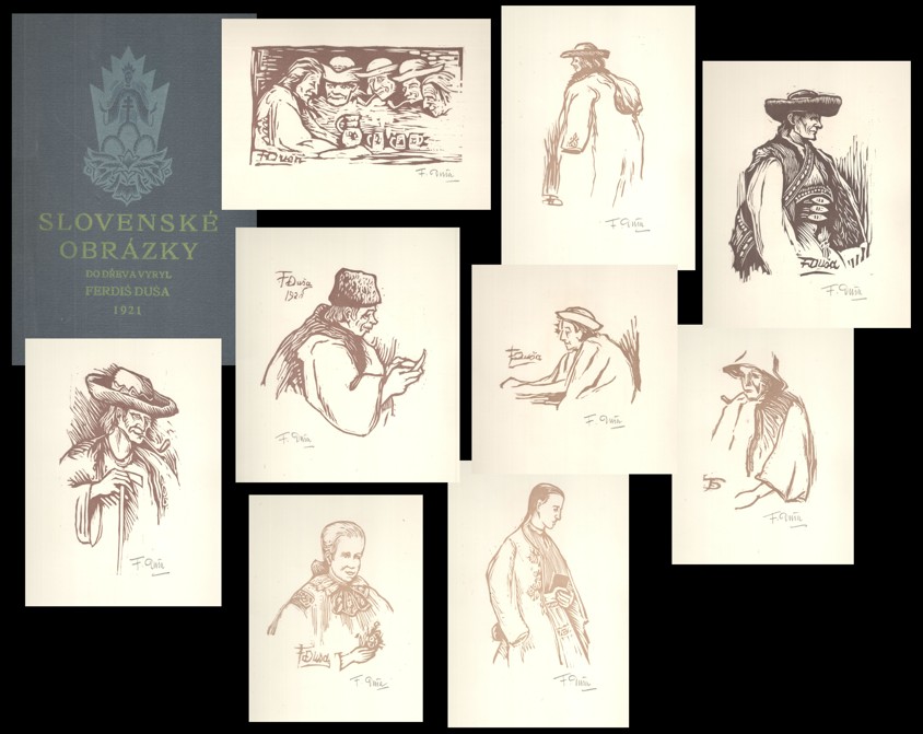 9x sign. dřevoryt a dřevoryt na tit. listě F. Duša, vyd. B. Konařík, Velké Kunčice, 1921, ex. 109, tisk Kryl a Scotti v Novém Jičíně, pův. obs. 10 dřevorytů, č. 4 chybí, volné listy v pův. ob., ta na hřbetu lehce poškozena, jinak dobrý stav