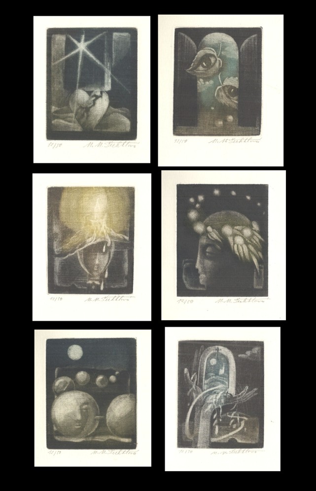 6x sign. mezotinta a slepotisk na ob. M.M. Šechtlová, vyd. K. Samšiňák, Sobotka, 1983, ex. 12/50, ruční papír, tiskl B. Knobloch, text Vl. Bujárek, volné listy v pův. ob., velmi dobře zachováno!