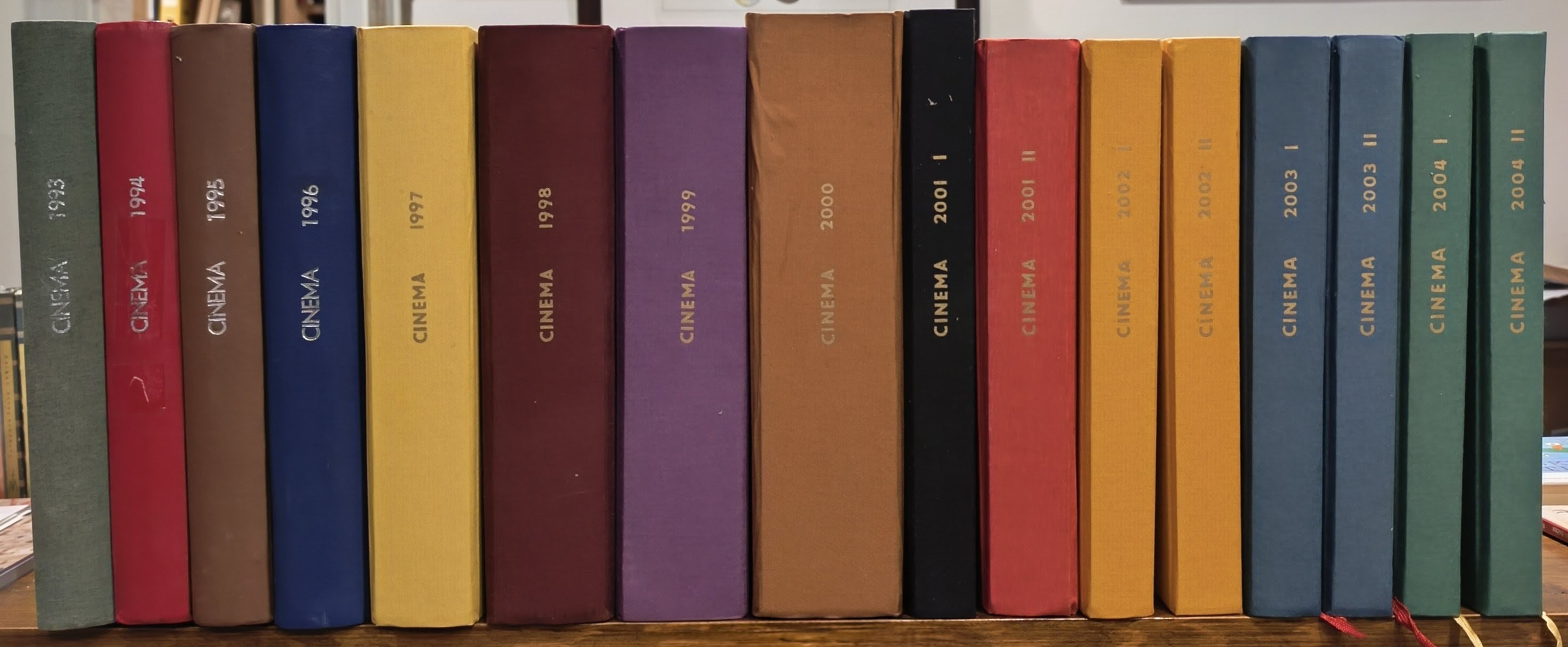12 kompletních ročníků časopisu Cinema; velmi kvalitní souvazba do plátěných desek; ročník 1993-2000 vždy v jednom svazku, od r. 2001 každý ročník ve dvou svazcích; vevázány i původní obálky; obs. ročník 1993, 1994, 1995, 1996, 1997, 1998, 1999, 2000, 2001, 2002, 2003 a 2004; NEZASÍLÁME - pouze osobní odběr!!