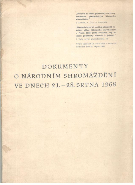 Dokumenty o Národním shromáždění ve dnech 21.-28. srpna 1968