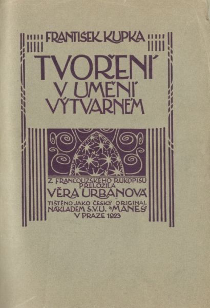 obálka, tit. list a frontispis Fr. Kupka, vyd. SVU Mánes, Praha, 1923, první vydání, obs. několik čb. vyobrazení, bílá clpl. převazba, pův. obálka vevázána, na hřbetu nalepen název z pův. obálky, 210s., velmi dobrý, krásný stav